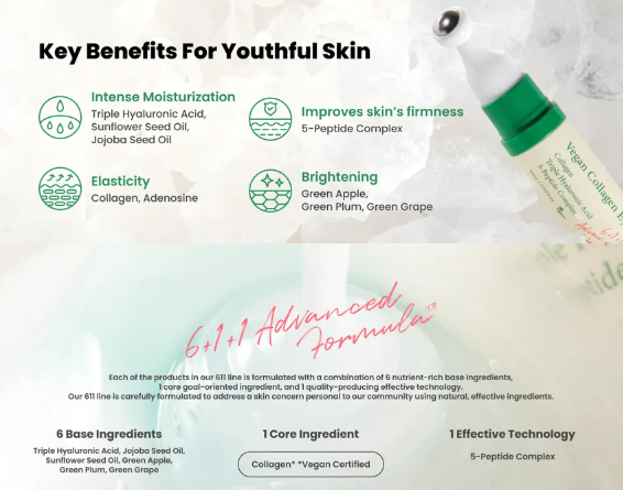 Migliora l’elasticità della pelle grazie al collagene vegano e al 5-Peptide Complex.