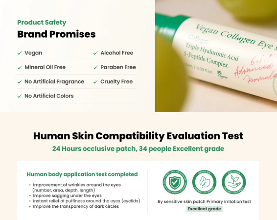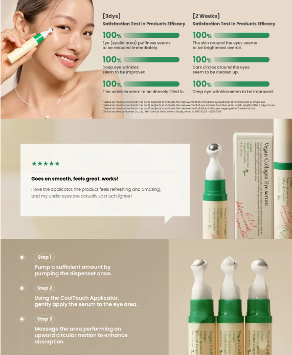 Questo siero occhi con collagene vegano fornisce un trattamento completo per migliorare le rughe, le borse sotto gli occhi, le occhiaie e il gonfiore.